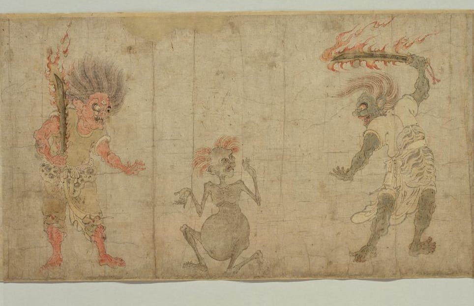 Hungry ghost getting tortured by two demons - Wikimedia Commons